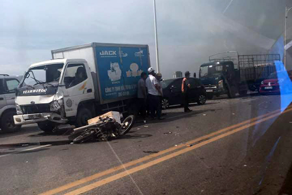 Vụ tai nạn xảy ra vào 13h30 chiều ngày 12-8 trên cầu Vĩnh Tuy (Hà Nội).