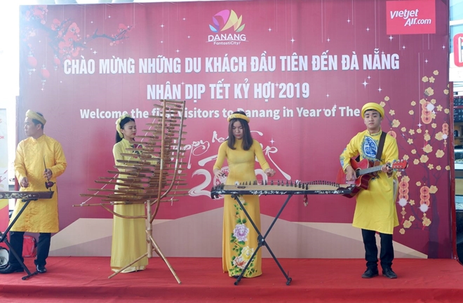 Sáng ngày 5-2 (ngày mùng một Tết Kỷ Hợi), TP. Đà Nẵng chào đón những vị khách "xông đất" bằng đường hàng không trên chuyến bay đầu tiên. |