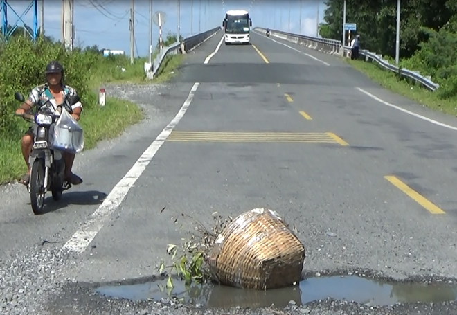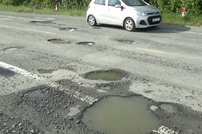 Do đang vào mùa mưa nên mặt đường thường xuyên bị đọng nước, nên các ổ gà, ở trâu, ổ voi càng bị khoét sâu và lớn dần ra, gây nguy hiểm cho người đi đường.