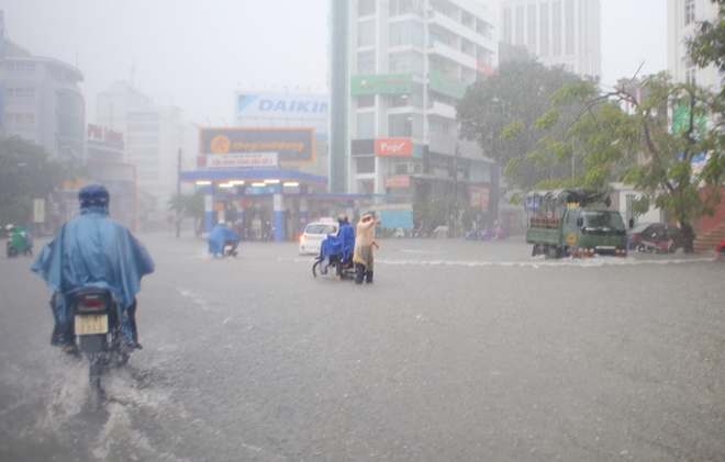 | Tuyến đường Lê Quý Đôn, TP Huế bị ngập trên 0,3m. |