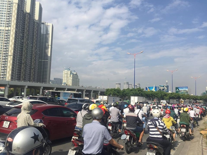 | Giao thông qua cầu Sài Gòn bị ùn ứ |