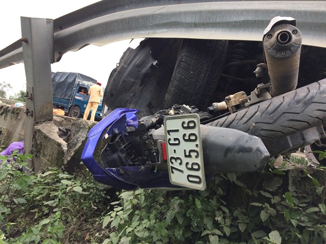 Vào thời điểm trên, anh Nguyễn Duy Khánh (29 tuổi, trú xã Vạn Ninh, huyện Quảng Ninh, tỉnh Quảng Bình) lái xe máy BKS: 73G1- 065.66 chở theo mẹ ruột là bà Nguyễn Thị Thu (53 tuổi) chạy hướng Bắc- Nam.