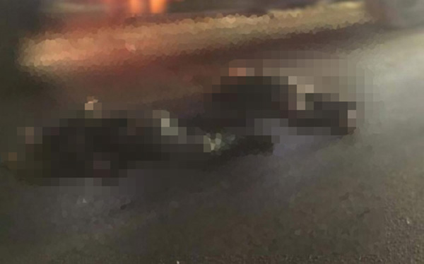Cú va chạm mạnh khiến 2 thanh niên ngã xuống đường bị xe tải cán qua người tử vong tại chỗ.