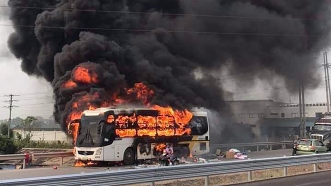 Vào lúc 15h10 phút ngày 17-10, một xe khách đang di chuyển trên cao tốc Bắc Giang - Lạng Sơn, đoạn qua thôn Riễu, xã Dĩnh Trì (TP Bắc Giang) thì bất ngờ bốc cháy.