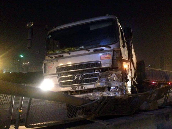Cụ thể, vào khoảng thời gian trên, xe tải mang biển kiểm soát 30P-1193 di chuyển về hướng Mai Dịch thì bất ngờ mất lái, đâm thẳng vào dải phân cách đường vành đai 3 trên cao.