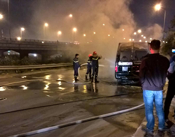 Vào khoảng 23h tối 1-12, chiếc xe khách biển số 36B-022.81 chạy tuyến Thanh Hóa - Hà Nội bỗng nhiên bốc cháy khi tới cao tốc Pháp Vân - Cầu Giẽ (đoạn gần đường Bùi Huy Bích, quận Hoàng Mai, Hà Nội).