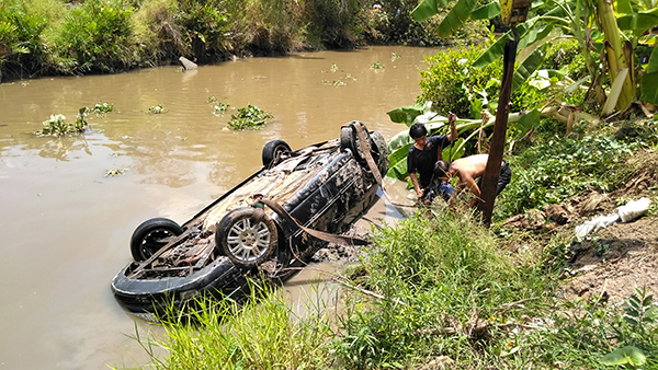 Lùi xe để quay đầu, ô tô con lật ngửa xuống rạch Bà Rằng