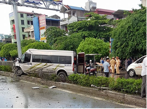 Khoảng hơn 5h sáng nay (15-7), xe ô tô 16 chỗ Ford Transit BKS 15B1-02461 chạy hướng Hạ Long – Cẩm Phả đến đoạn Cột 3 (Khu vực trước cửa toà án cũ) trên QL18 đã mất lái, lao lên dải phân cách và đâm vào cột điện.