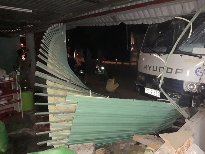 Tại hiện trường, phần cửa quán ăn và một bức tường bên trong bị đổ sập. Chiếc xe tải bị hư phần đầu. Rất may vào thời điểm trên không có người qua lại, không gây thương vong về người.