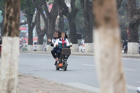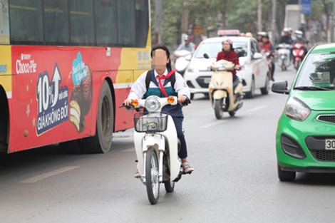 Những trường hợp đi xe đạp, xe máy điện không đội mũ bảo hiểm đa phần là học sinh các trường trên địa bàn Hà Nội. Các em khi tham gia giao thông vẫn “hồn nhiên” vi phạm.