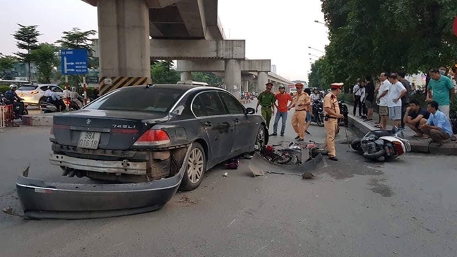 Thời điểm trên, ô tô BMW 98A-016.18 đã tông vào một xe ô tô KIA mang BKS 30E-674.82 cách hiện trường khoảng 100m, rồi tông hàng loạt các phương tiện, sau đó kéo lê tới địa điểm trên.