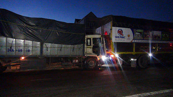 | Hiện trường ô tô biển số 34K- 6618 đâm vào ô tô tải 51C - 61717 mới dừng lại |