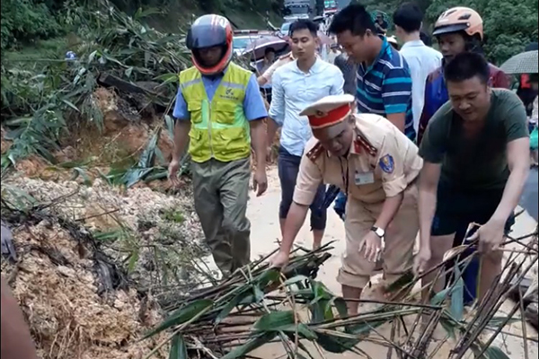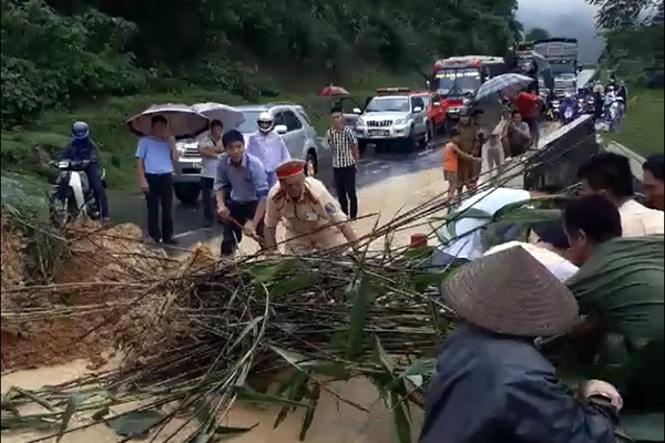 Do đang là giờ cao điểm của các phương tiện xe khách giường nằm lưu thông từ Điện Biên xuống các tỉnh miền xuôi nên đã có hàng trăm phương tiện ô tô tại hai đầu điểm sạt lở phải chờ lực lượng chức năng huy động các loại phương tiện máy móc đến giải tỏa số bùn đất sạt xuống lòng đường.