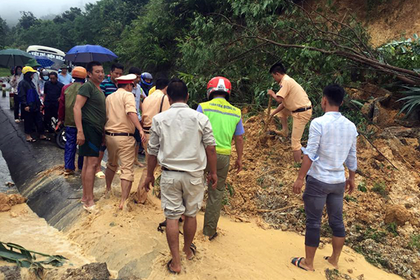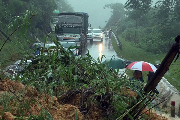 | Nhiều phương tiện bị ách tắc do sạt lở nghiêm trọng |