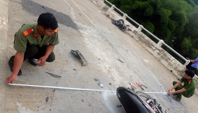 Cú va chạm rất mạnh khiến Kh., S., V. tử vong sau đó, Ch. bị thương nặng được đưa đến bệnh viện điều trị, 2 xe máy biến dạng.
