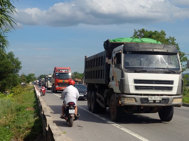 | Tuyến đường tránh Huế ách tắc giao thông sau vụ cháy. |