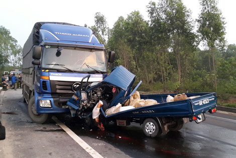 Thời điểm trên, xe tải BKS 76C-038.53 do Nguyễn Thiên Dương (42 tuổi, trú TP Quảng Ngãi) điều khiển chạy hướng Nam- Bắc, đến đây đã bị xe tải hạng nhẹ mang BKS 43C-075.71 chạy ngược chiều bất ngờ lao thẳng qua trái đường rồi đâm trực diện vào.