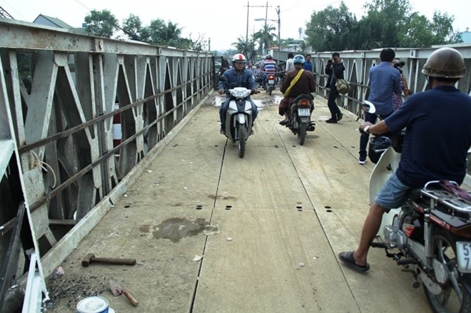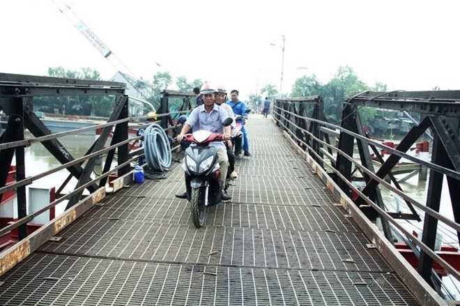 | Người dân vui mừng qua cầu vì không còn phải đi đường vòng |