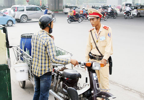 | CSGT Hà Nội kiên quyết xử lý một xe cũ. |