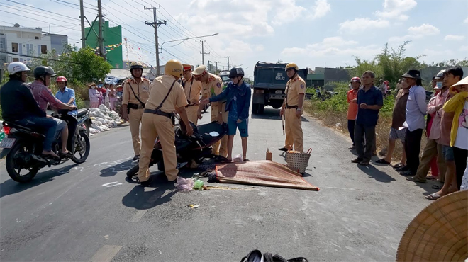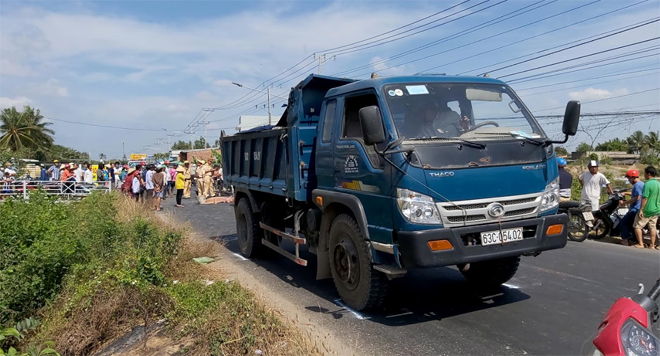 Cú va chạm khiến cả 3 người cùng phương tiện ngã xuống đường cùng thời điểm xe ben mang BKS 63C-054.02 (chưa rõ tên tuổi tài xế) điều khiển chở đá xây dựng đang lưu thông theo hướng ngược lại không tránh kịp nên tiếp tục va chạm vào.