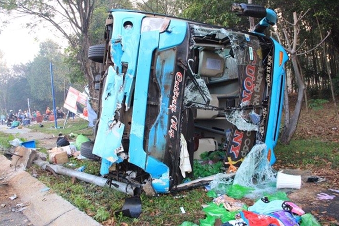 Cú va chạm mạnh khiến xe khách và xe tải lật ngang, 30 hành khách trên xe đã được người dân xung quanh cùng lực lượng Công an có mặt kịp thời hỗ trợ đưa ra ngoài. Vụ việc làm 7 người trên xe khách bị thương được đưa đến bệnh viện cấp cứu. Do vết thương quá nặng, anh B. đã tử vong ngay sau đó.