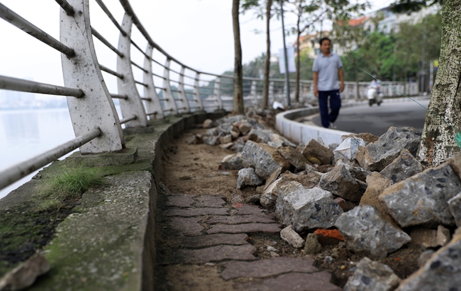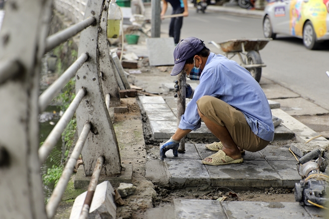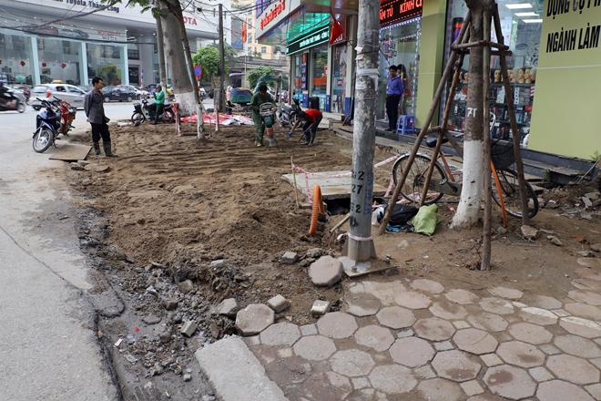 | Nhiều đoạn vỉa hè vẫn còn đang trong quá trình thi công. |