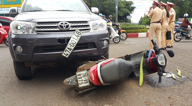 Xe Fortuner tông xe máy, một phụ nữ nhập viện