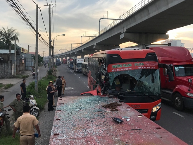 Khi lưu thông qua khỏi trạm kiểm dịch động vật Thủ Đức (phường Linh Trung, quận Thủ Đức, TP Hồ Chí Minh) thì tông vào rơ-mooc xe đầu kéo đang dừng sát làn đường bên phải.