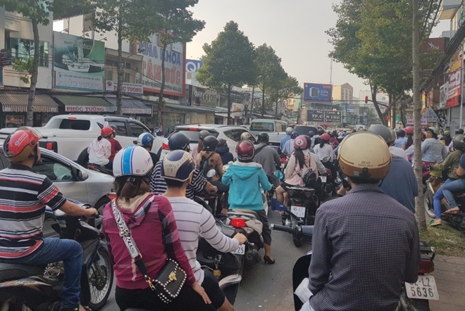 Do vụ va chạm xảy ra vào giờ cao điểm nên giao thông ùn tắc nghiêm trọng tại khu vực ngã tư Mậu Thân giao nhau với đường 3-2.
