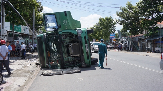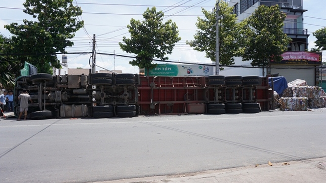 Lúc 10 giờ 30 phút ngày 30-6, xe container mang BKS 51C-44120 chở hàng chục tấn giấy được đóng thành từng khối, do tài xế Nguyễn Phú Châu (SN 1985, ngụ thị xã Bến Cát, Bình Dương) điều khiển lưu thông trên đường Lê Hồng Phong hướng từ TP.Thủ Dầu Một (Bình Dương) ra đường Huỳnh Văn Luỹ.