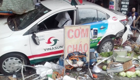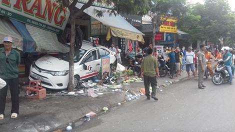 Chưa dừng lại, chiếc xe taxi tiếp tục lao sang đường tông vào quán ăn sáng vỉa hè làm mọi người la hét tháo chạy náo loạn. Lúc này, 3 người đang ăn sáng bị xe taxi cuốn vào gầm, 2 người bị húc văng vào tạp hóa bên cạnh được đưa đi cấp cứu trong tình trạng nguy kịch.