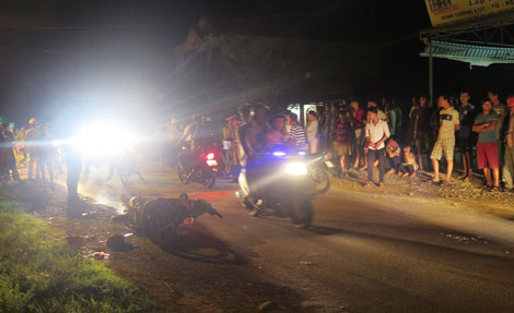 Do chạy với tốc độ cao trên đoạn đường hẹp và tối, hai xe máy đâm vào nhau khiến 1 người tử vong, 1 người nguy kịch.