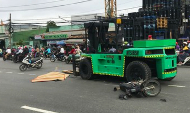 Khi đang lên cầu Bình Phước 2, xe nâng đã va chạm với xe gắn máy khiến người điều khiển xe máy tử vong tại chỗ…