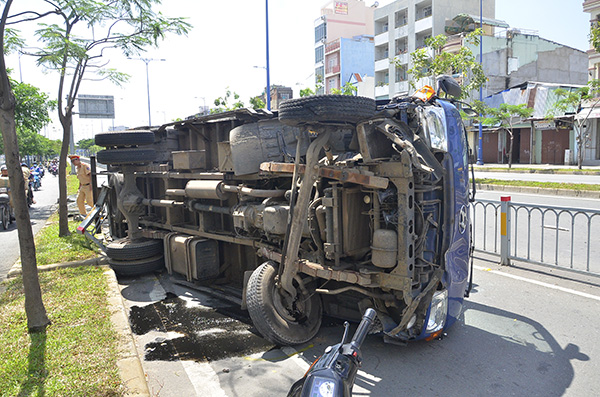 Khi còn cách cầu Chà Và khoảng 200m ( thuộc phường 13, quận 5) xe tải bất ngờ bị nổ lốp đâm vào dải phân cách rồi lao qua làn đường dành cho xe gắn máy và lật ngang.