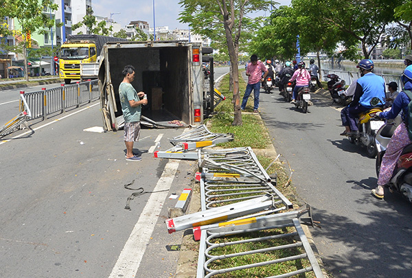 Tại hiện trường hàng chục mét dải phân cách bằng sắt bị xe tải hất tung, hàng hóa trên xe tải văng ra đường. Chiếc xe tải chắn ngang làn xe hai bánh nên gây ùn ứ giao thông tại khu vực này. Đến 14h, một xe tải khác đến di chuyển hàng hóa trong xe tải bị lật và đưa xe tải ra khỏi hiện trường, giao thông qua khu vực này đã trở lại bình thường.