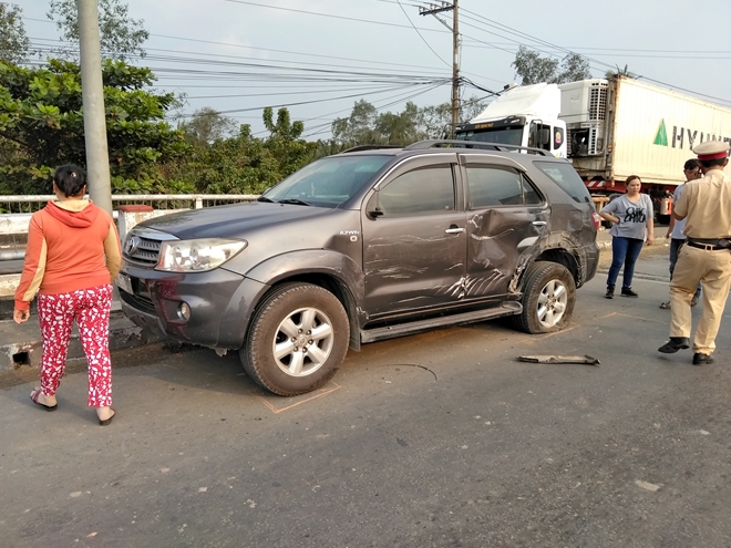 Khi 2 xe vừa lên giữa cầu Bến Chùa, đoạn địa bàn phường 10, TP Mỹ Tho, tỉnh Tiền Giang thì bất ngờ va chạm vào nhau. Sức va chạm mạnh khiến xe 7 chỗ bị nổ vỏ sau và bị xe tải ép chặt vào lan can cầu.