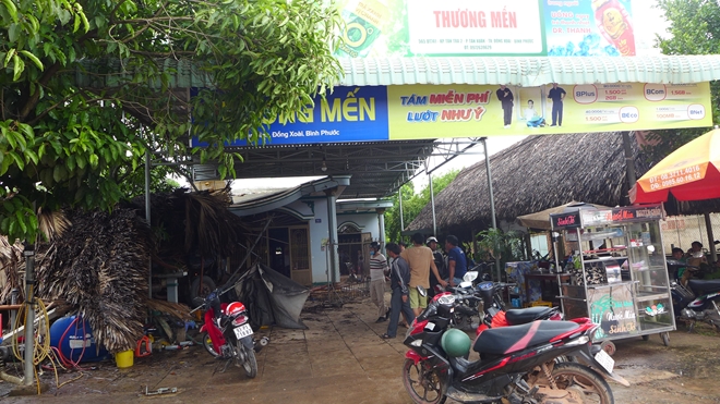 Sau khi qua làn đường phía đối diện, xe tải tiếp tục lao qua một tiệm uốn tóc rồi tông thẳng vào quán cà phê Thương Mến do anh Nguyễn Xuân Hóa (46 tuổi) làm chủ.