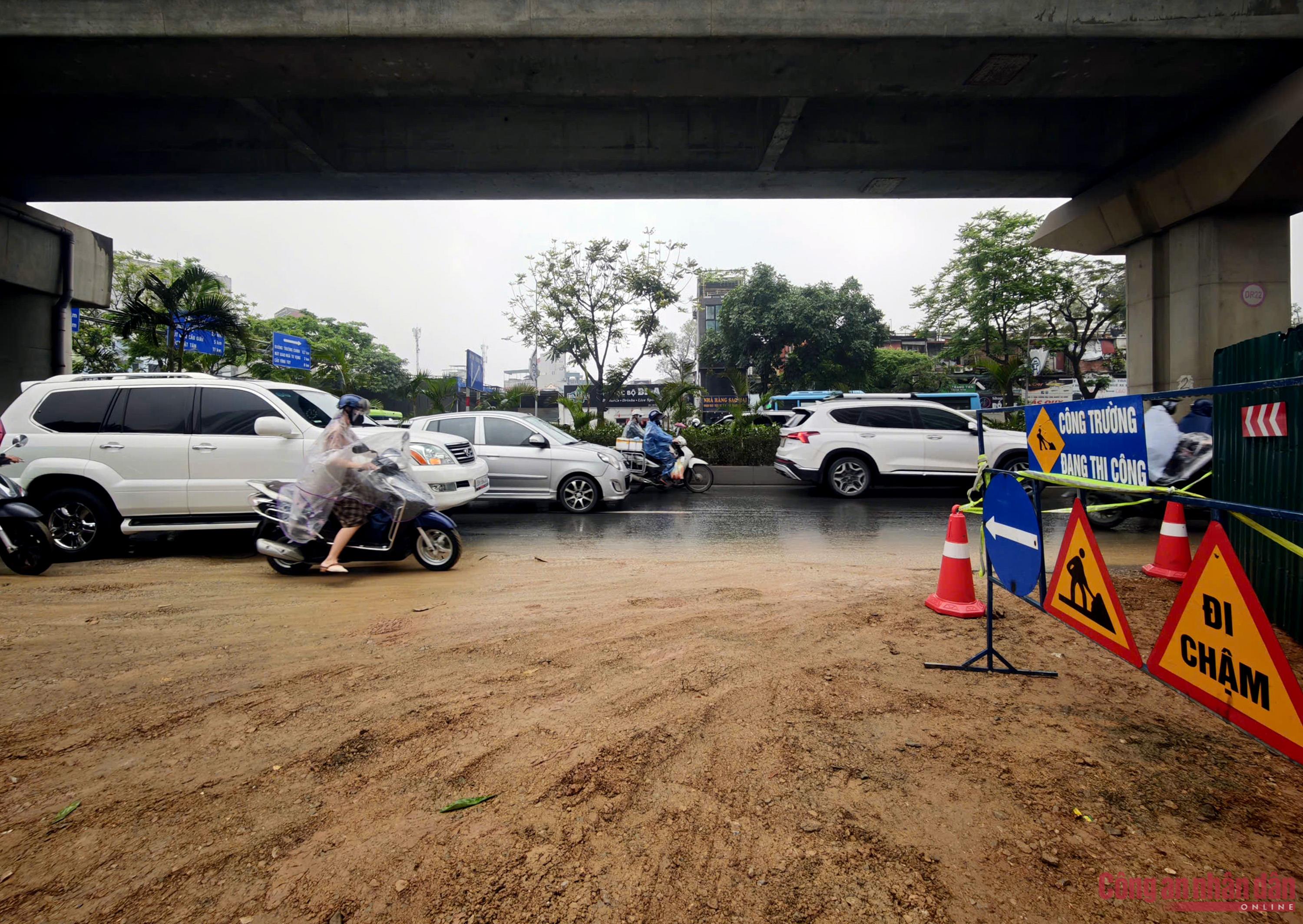 Ghi nhận thực tế của PV Báo CAND trong sáng 2/4 tại một số điểm thi công, phần diện tích dành cho phương tiện lưu thông bị thu hẹp đáng kể. Lưu lượng phương tiện lớn, trong khi mặt đường hạn chế khiến dòng xe di chuyển chậm, nhiều thời điểm xảy ra tình trạng dồn ứ kéo dài. Các phương tiện xe máy len lỏi qua từng khoảng trống nhỏ, tiềm ẩn nguy cơ mất an toàn giao thông.