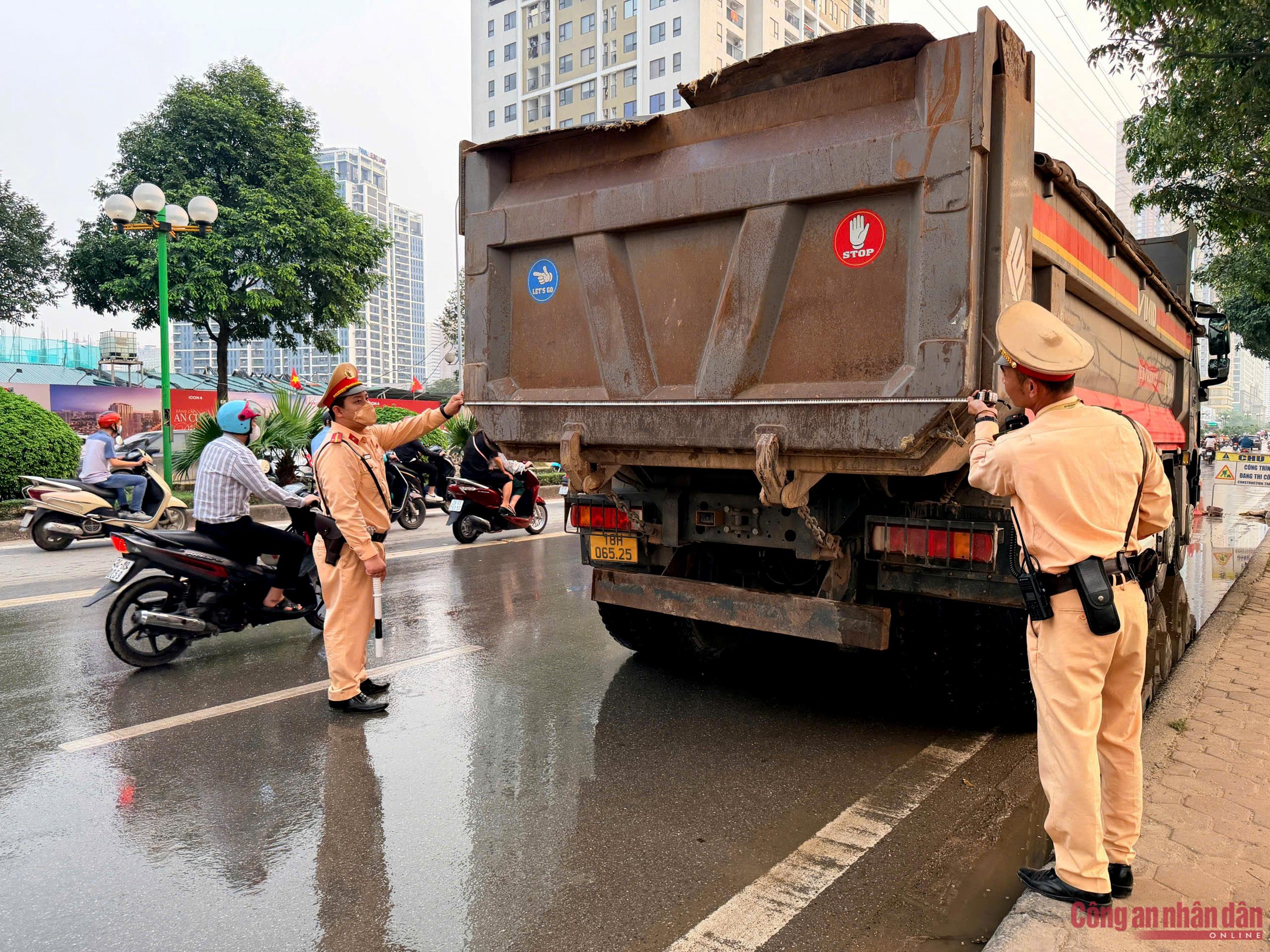 Bên cạnh đó, nhằm ngăn chặn tình trạng xe tải chở vật liệu xây dựng làm rơi vãi bùn đất, gây mất trật tự an toàn giao thông, lực lượng CSGT đã bố trí các tổ công tác kiểm soát chặt chẽ tại khu vực cổng công trình. Qua đó, kịp thời phát hiện, xử lý nghiêm các trường hợp vi phạm, yêu cầu khắc phục ngay các điều kiện an toàn trước khi phương tiện tham gia giao thông. Các nhà thầu, doanh nghiệp vận tải được yêu cầu ký cam kết chấp hành nghiêm quy định về bảo đảm trật tự, an toàn giao thông,vệ sinh môi trường, không chở quá tải, không để rơi vãi vật liệu, che chắn đầy đủ khi lưu thông.