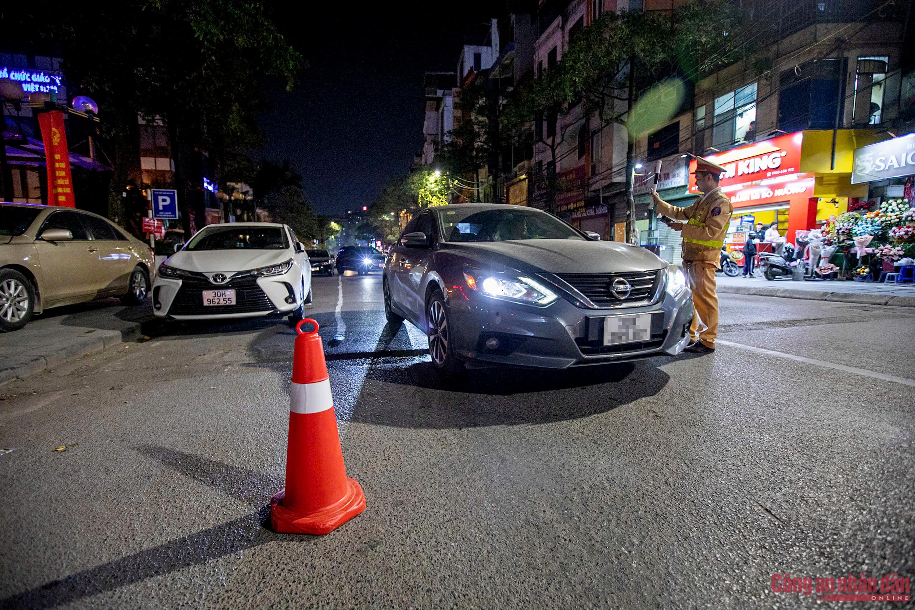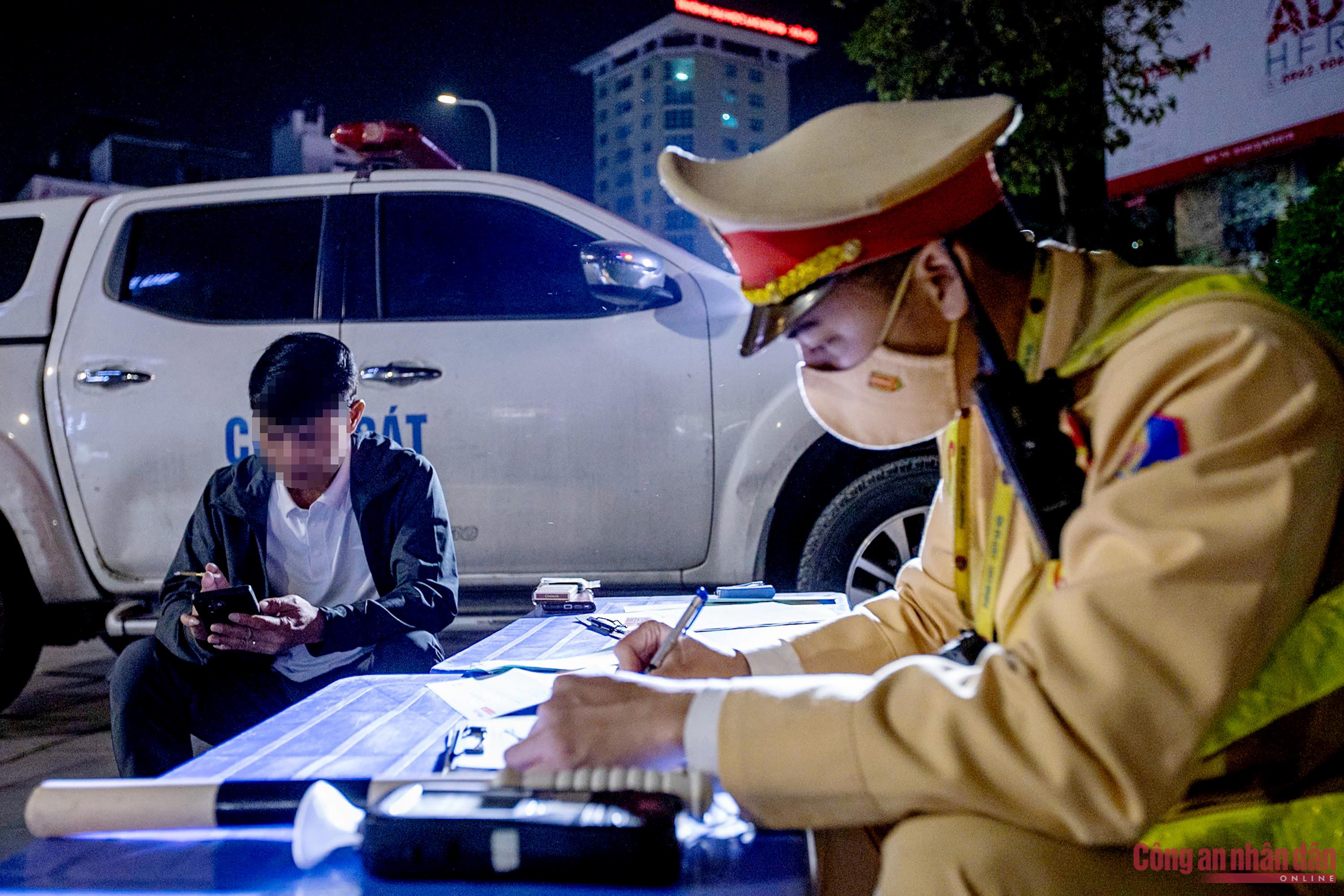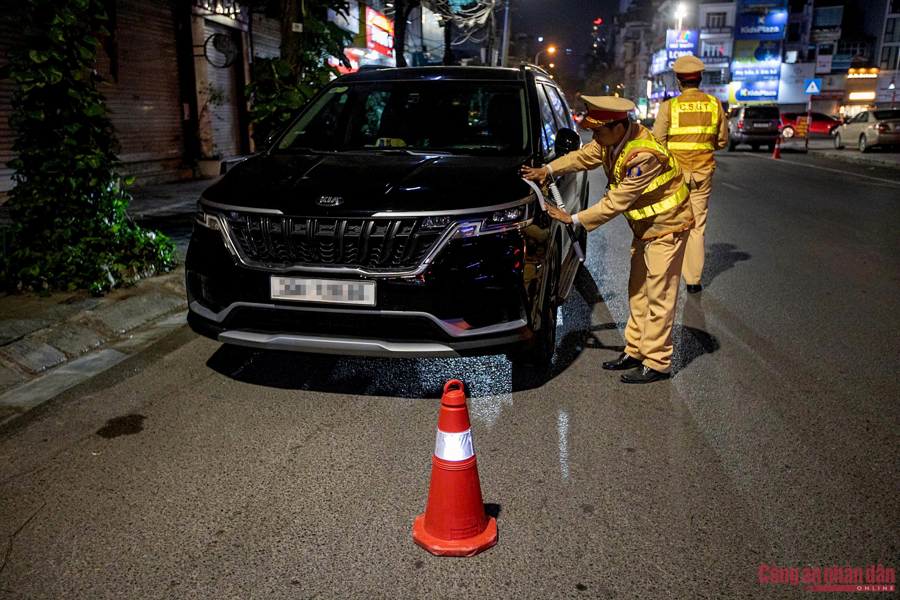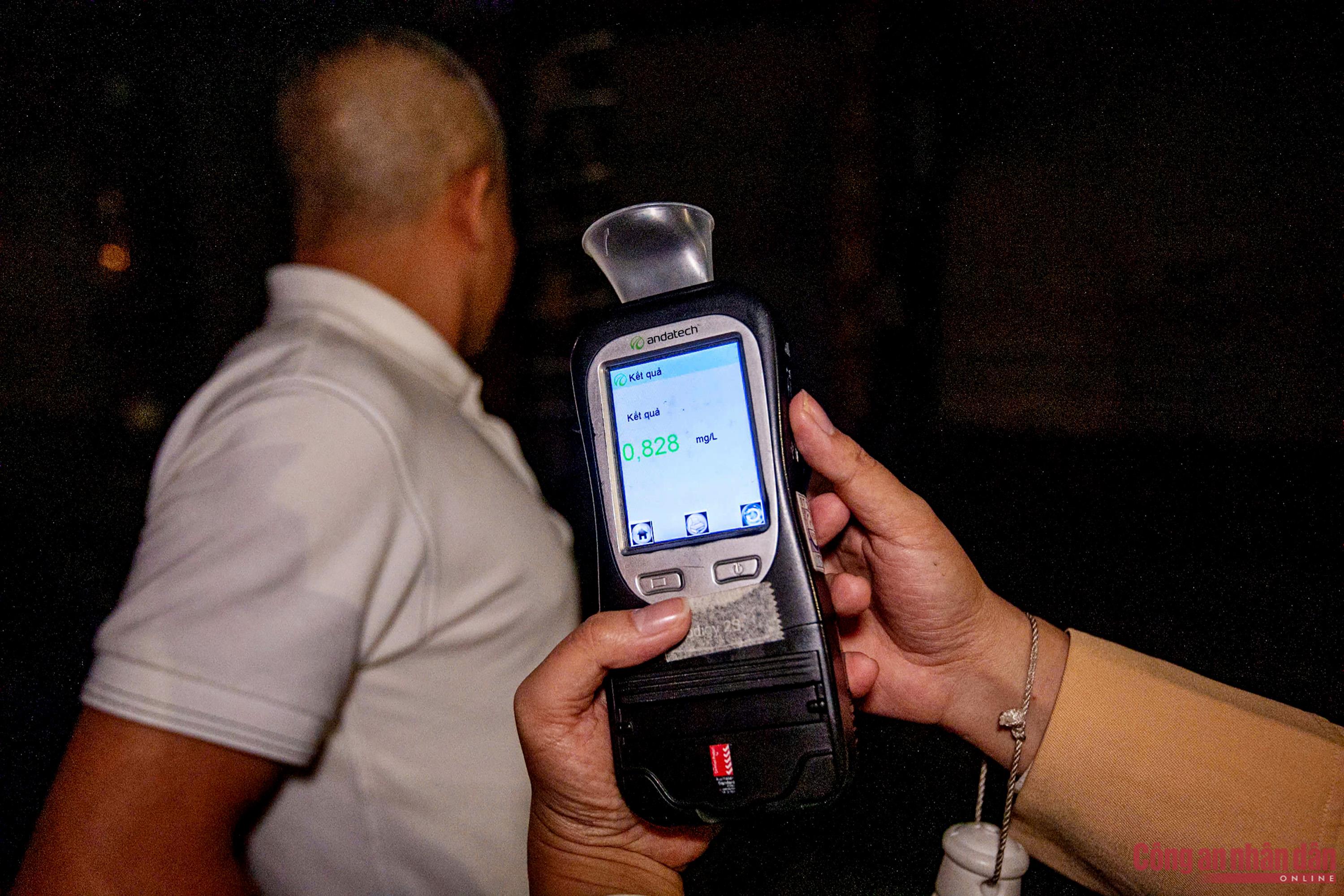 Tổ CSGT công khai thực hiện nhiệm vụ tại khu vực phố Trung Hòa (phường Yên Hòa, Hà Nội) dừng kiểm tra các phương tiện lưu thông trên tuyến và cả các trường hợp nghi vấn được tổ hóa trang thông báo.Hàng trăm lượt phương tiện đã được Cảnh sát kiểm tra trong tối qua.Cảnh sát kiểm soát nồng độ cồn không chỉ với người điều khiển ô tô cá nhân mà cả các tài xế chạy xe dịch vụ và xe buýt.Đáng chú ý, tổ CSGT phát hiện tài xế K.J. (quốc tịch Hàn Quốc) điều khiển ô tô BKS: 30K-728.XX vi phạm nồng độ cồn ở mức 0,081 mg/L khí thở. Người này cho biết trước đó vừa uống nửa cốc bia rồi lái xe về nhà không ngờ đã vi phạm luật giao thông. Nam tài xế người Hàn Quốc bày tỏ sự ủng hộ đối với việc lực lượng chức năng tăng cường kiểm tra, xử lý vi phạm nồng độ cồn và cam kết không tái phạm.Một trường hợp vi phạm khác được tổ công tác phát hiện vi phạm thậm chí đang điều khiển ô tô chở theo vợ con trên xe sau khi đã uống rượu bia trước đó.Sau khi được lực lượng chức năng nhắc nhở về sự nguy hiểm đối với hành vi vi phạm này, người này đã nhận thức được lỗi của mình và ký vào biên bản xử phạt.Gần 24h đêm, tổ công tác của Đội CSGT số 6 tiếp tục phát hiện thêm một trường hợp "ma men" điều khiển ô tô với mức vi phạm nồng độ cồn lên tới 0,828 mg/L khí thở, gấp đôi mức "kịch khung".Tổ công tác đã lập biên bản đối với tài xế N.V.C. lỗi điều khiển xe trên đường mà trong hơi thở có nồng độ cồn vượt quá 0,4mg/L khí thở. Với lỗi này, tài xế C. sẽ bị phạt 35 triệu đồng và tước quyền sử dụng giấy phép lái xe 23 tháng. CSGT cũng niêm phong phương tiện, tạm giữ xe.Cá biệt, tổ công tác CSGT còn phát hiện cả tài xế taxi tên C.V.K. (SN 1985) cũng vi phạm nồng độ cồn với mức 0,321 mg/L khí thở. Người này cho biết, bản thân khá chủ quan khi nghĩ rằng dù uống rượu bia trước đó thì chỉ cần ngủ một giấc dậy là nồng độ cồn trong người không còn và có thể vô tư lái xe ra đường.Cảnh sát niêm phong phương tiện của người vi phạm.