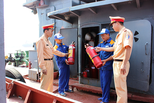 | Kiểm tra thiết bị PCCC trên tàu chở xăng dầu. |