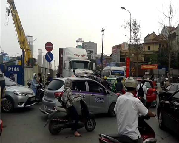Đây là đoạn đường bị thu hẹp rất nhiều bởi hàng rào của công trình đường sắt trên cao đang thi công và có biển báo quy định các phương tiện chỉ được đi 1 chiều (hướng từ Nhổn vào trung tâm Hà Nội). Do vậy, chiếc xe đầu kéo mang biển kiểm soát 34C – 081.42 của nhà xe Long Dương khi đi vào đường cấm đã trở thành vật cản lớn giữa giờ cao điểm.