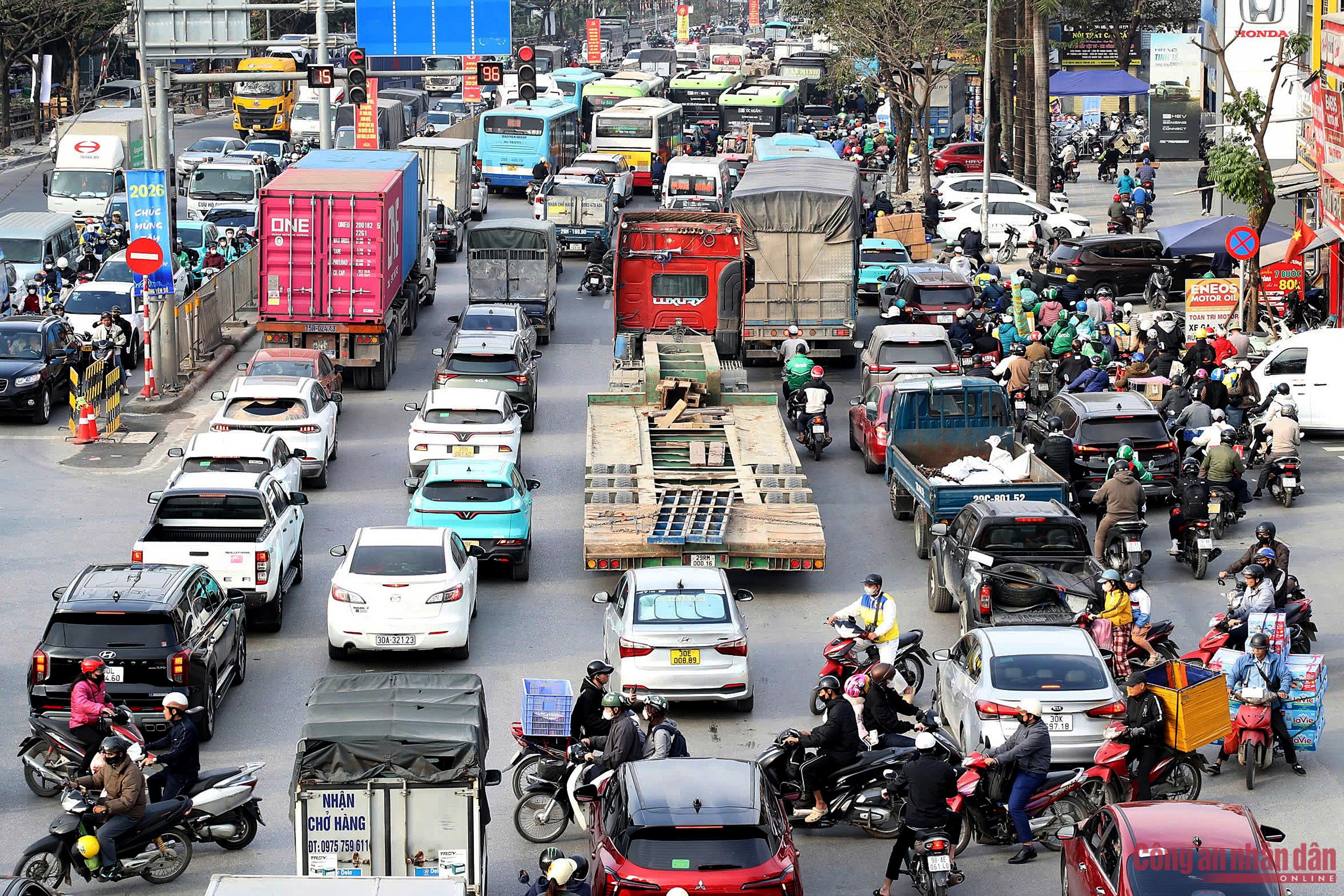 Đường phố Hà Nội ngày cuối năm đông nghịt người và xe