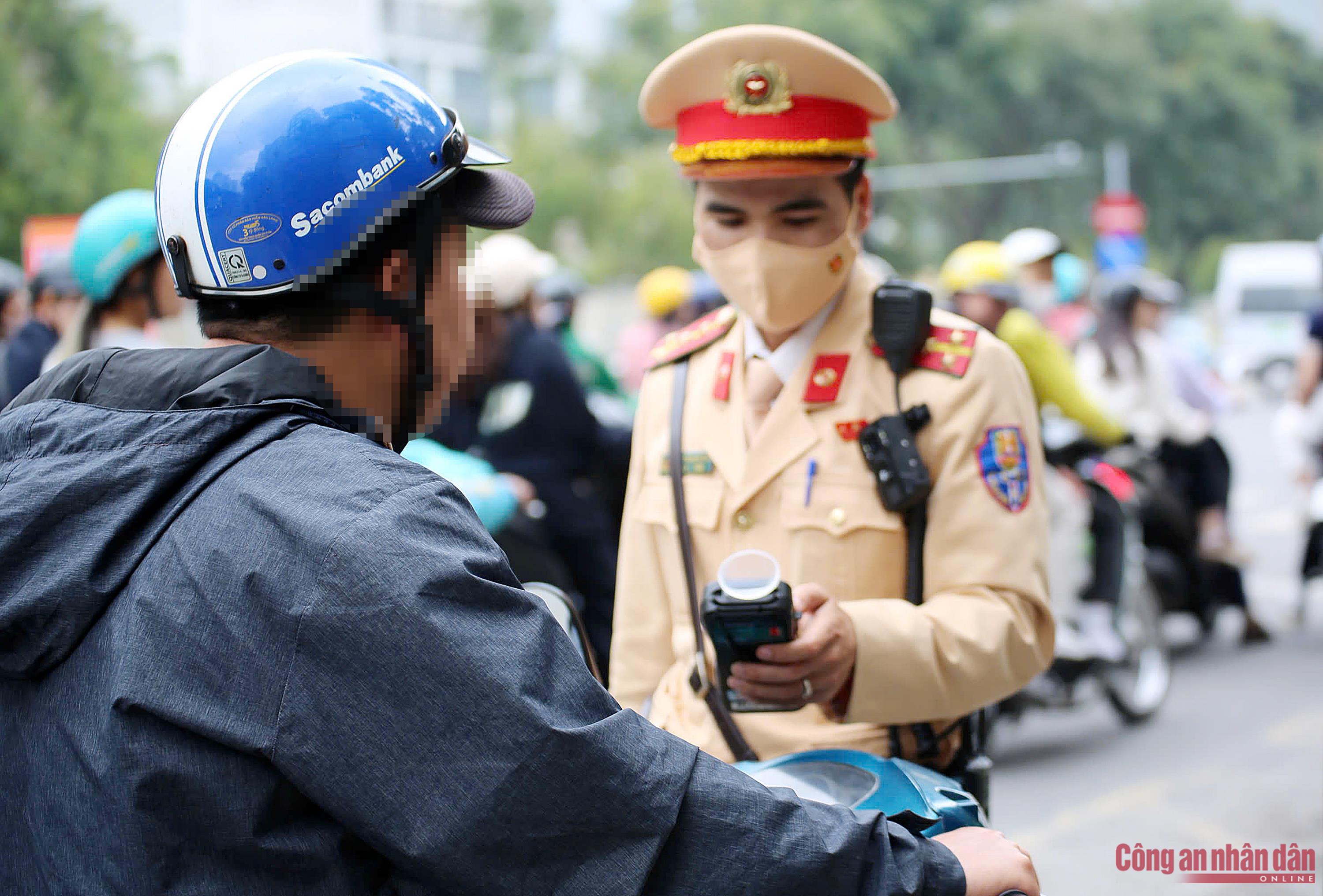 Ghi nhận của PV Báo CAND khi theo chân tổ công tác của Đội CSGT số 2 (Phòng CSGT Công an TP Hà Nội) phối hợp với Công an phường Ngọc Hà (Hà Nội) triển khai lực lượng tổ chức kiểm soát nồng độ cồn đối với người điều khiển phương tiện tham gia giao thông tại nút giao Liễu Giai - Phan Kế Bính.