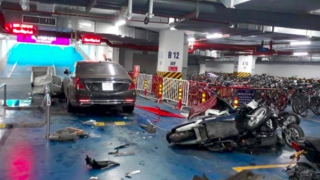 Nhân viên bảo vệ điều khiển xe Mercedes gây tai nạn dưới hầm chung cư