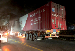 Xe container đang lưu thông trên cao tốc Hà Nội - Lào Cai bỗng nhiên bốc cháy