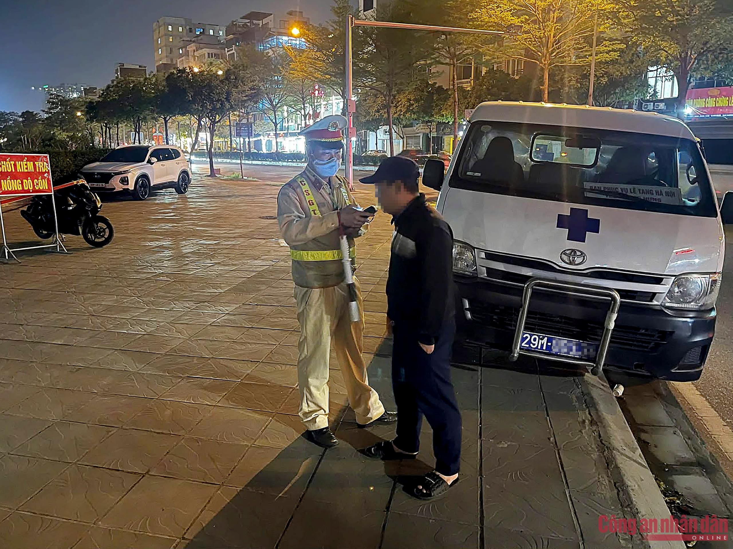 Qua kiểm tra, tài xế lái ô tô của nhà tang lễ được xác định là V.T.H. (SN 1986) điều khiển xe mang BKS 29M-003.XX, vi phạm ở mức 0,071mg/L khí thở.