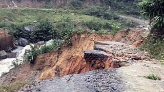 Đơn vị sửa chữa đường nỗ lực khắc phục điểm sạt lở nặng taluy âm trên tuyến ĐH01.