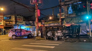 Xe tải lật ngang sau khi tông trúng xe taxi chở khách vượt đèn đỏ