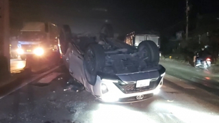 Xe ô tô 5 chỗ lưu thông trên cao tốc TP Hồ Chí Minh-Long Thành-Dầu Giây, đến gần trạm thu phí Long Phước (TP Thủ Đức) thì tông liên hoàn với 1 xe 5 chỗ và 1 xe 16 chỗ biển số xanh, cao tốc bị ùn ứ…